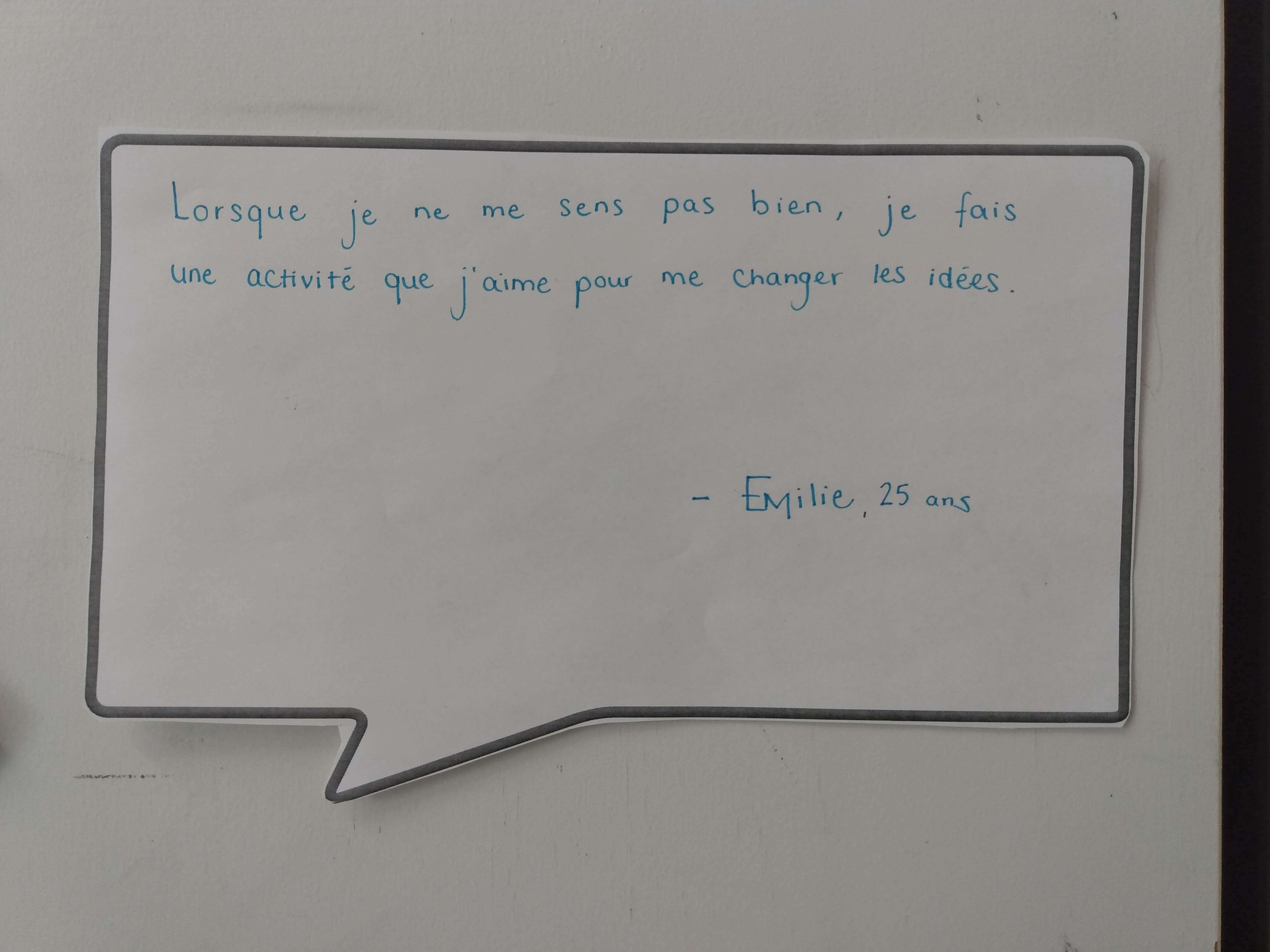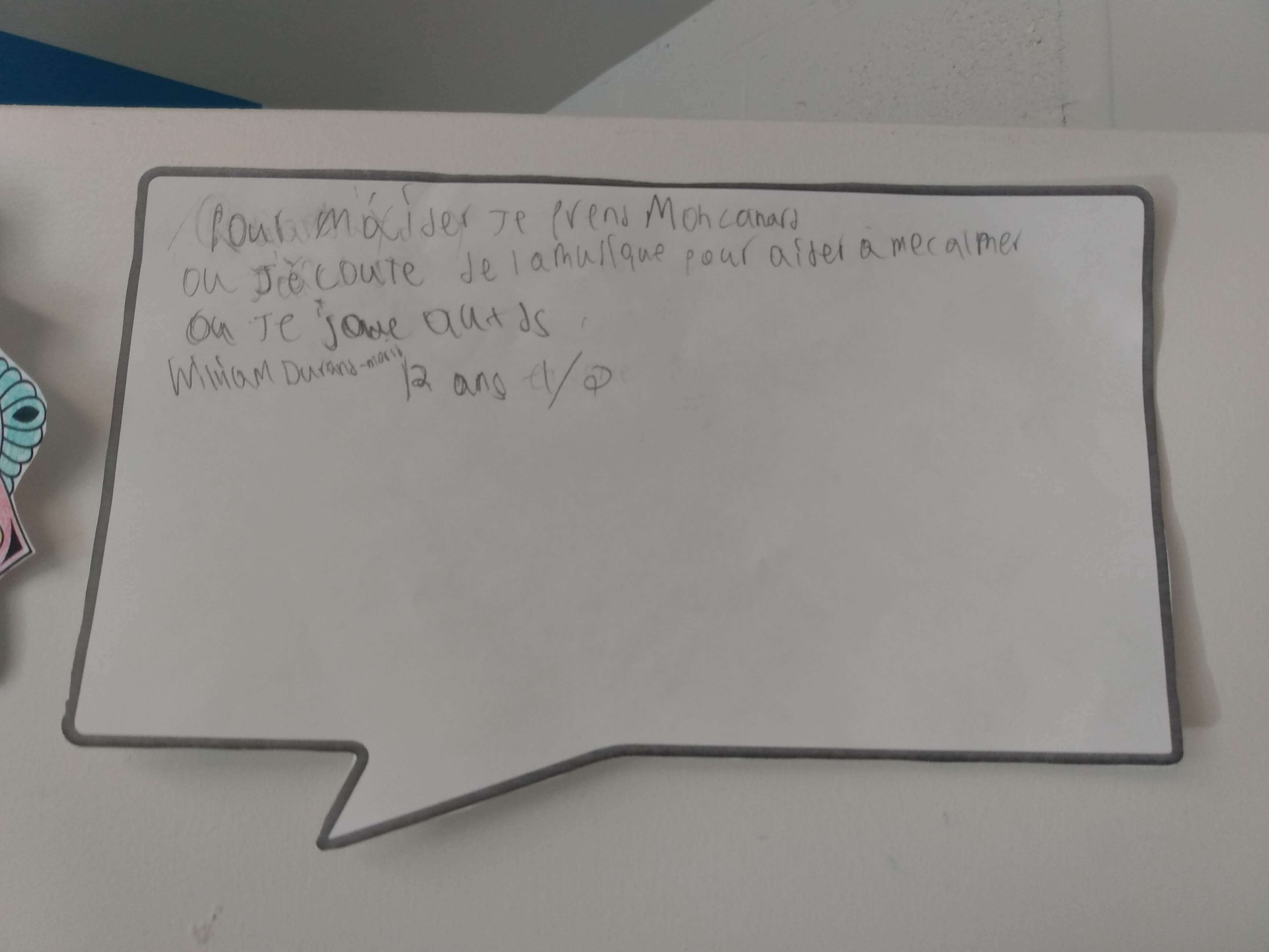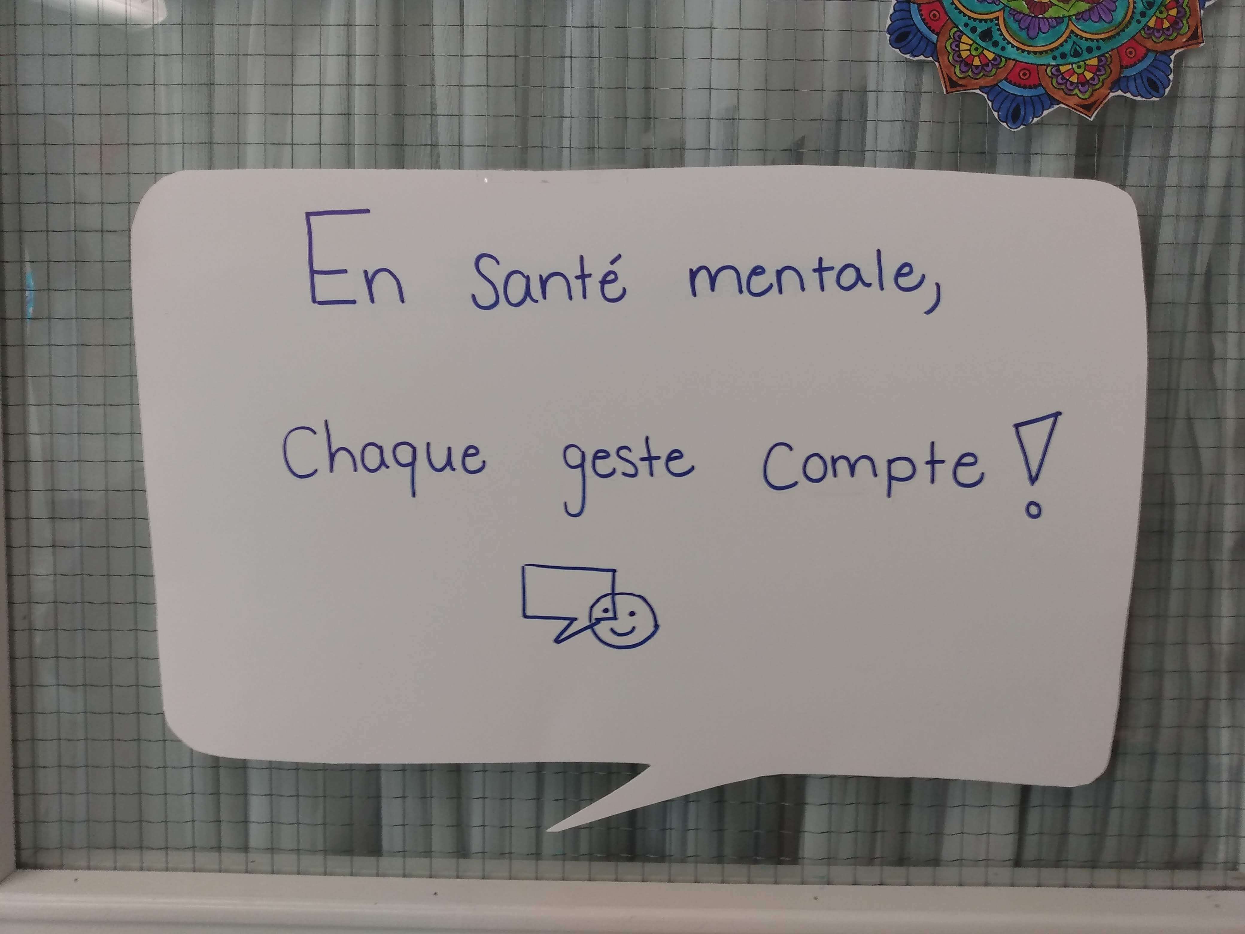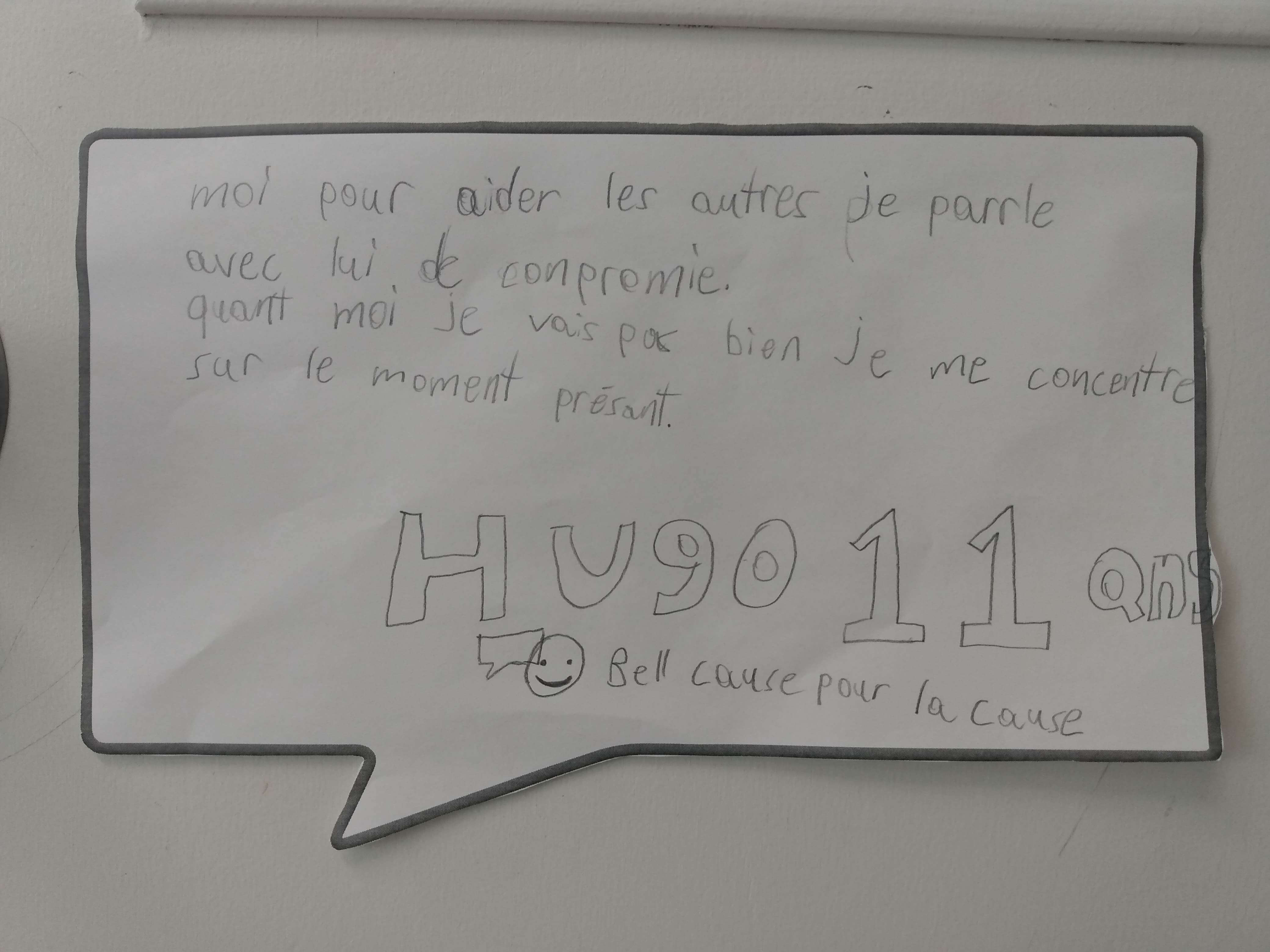 Comme il n'est jamais trop tôt pour s’initier à la participation sociale, le groupe 824, composé d'élèves du deuxième et du troisième cycle du primaire, a souligné la journée Bell cause pour la cause. Pour ce faire, chaque élève s'est initié à la méditation pleine conscience en coloriant un mandala. De plus, les élèves ont aussi noté un geste qu'ils posent lorsqu'ils ne se sentent pas bien ou qu'un proche ne se sent pas bien. En affichant leur travail sur la porte de leur classe, ils espèrent sensibiliser d'autres personnes à cette belle cause.