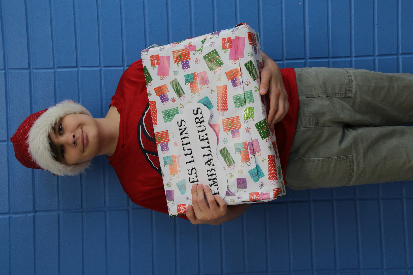 Les lutins du groupe F11, des élèves de première année du FPT (Formation de préparatoire au travail), vous offrent d'emballer vos cadeaux de Noël.